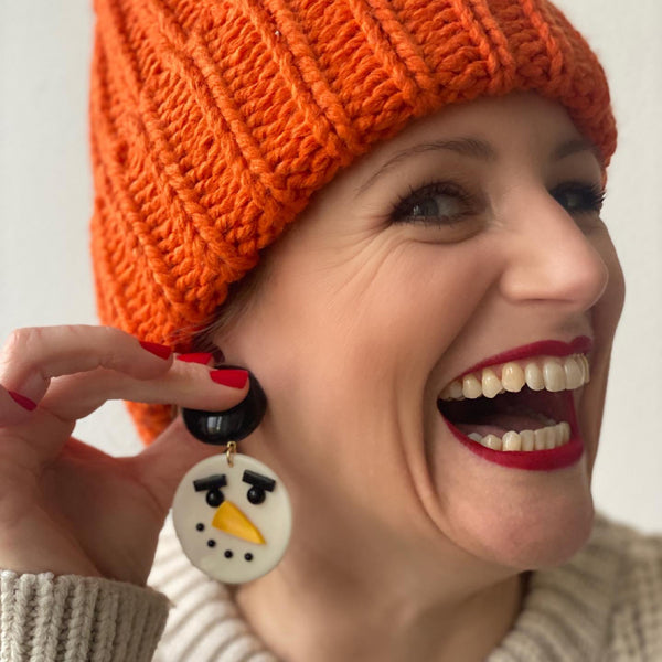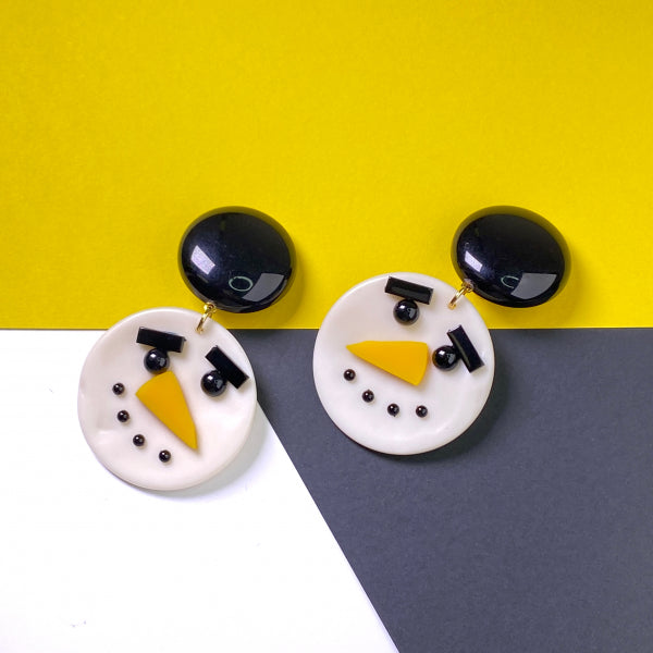 Edelbert makes our eyes light up! This snowman is a special companion on many a cold winter night! Total length 7.5 cm - snowman head 4.2 cm. All clips and studs have been meticulously gold-plated and handcrafted. All our jewelry elements are made according to our own designs, color schemes, and specifications, making each one unique and distinctive!