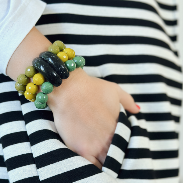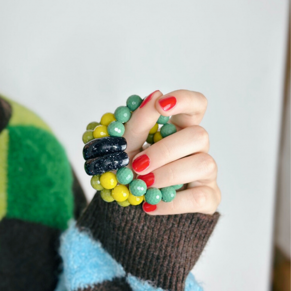 Unsere elastischen Armbänder sind beliebter als je zuvor! Gerne kombinieren wir mehrere Armbänder zusammen oder mit bunten Armeifen.