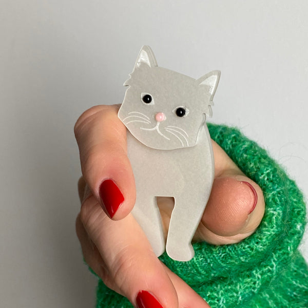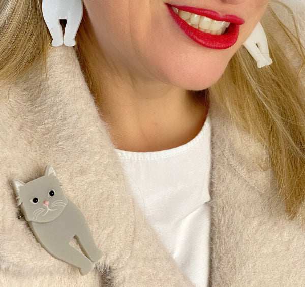 Jeder braucht einen Liebling. Das hier ist einer von uns: Unser Lieblingskätzchen Clara am Revers! Unsere gesamten Schmuckelemente werden nach eigenen Entwürfen, Farbdesigns und Vorgaben gefertigt und sind somit unverwechselbar und einzigartig!