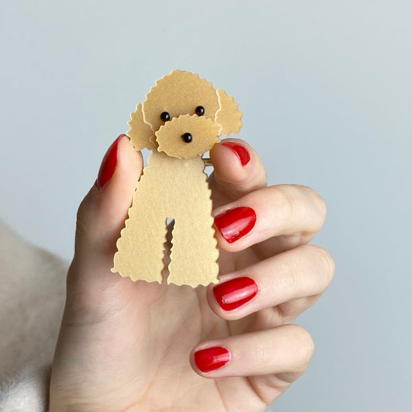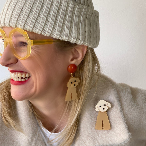 Jeder braucht einen Liebling. Das hier ist einer von uns: Unser Lieblingshündchen Henry am Revers! Unsere gesamten Schmuckelemente werden nach eigenen Entwürfen, Farbdesigns und Vorgaben gefertigt und sind somit unverwechselbar und einzigartig!