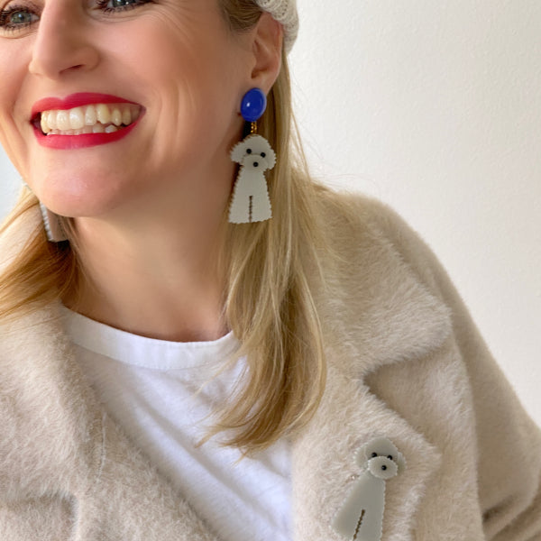 Jeder braucht einen Liebling. Das hier ist einer von uns: Unser Lieblingshündchen Lilly am Revers! Unsere gesamten Schmuckelemente werden nach eigenen Entwürfen, Farbdesigns und Vorgaben gefertigt und sind somit unverwechselbar und einzigartig!