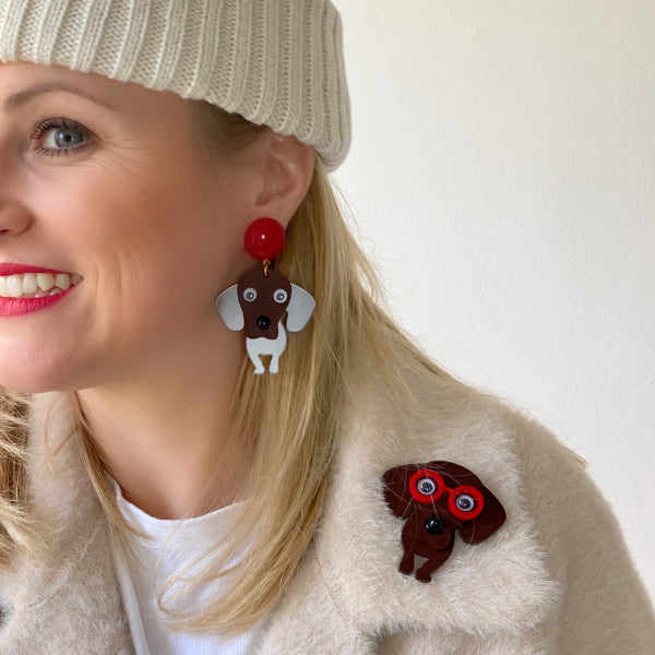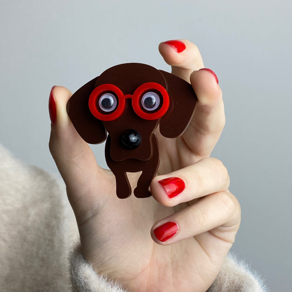 Jeder braucht einen Liebling. Das hier ist einer von uns: Unser Lieblingshündchen Waldi am Revers! Unsere gesamten Schmuckelemente werden nach eigenen Entwürfen, Farbdesigns und Vorgaben gefertigt und sind somit unverwechselbar und einzigartig!