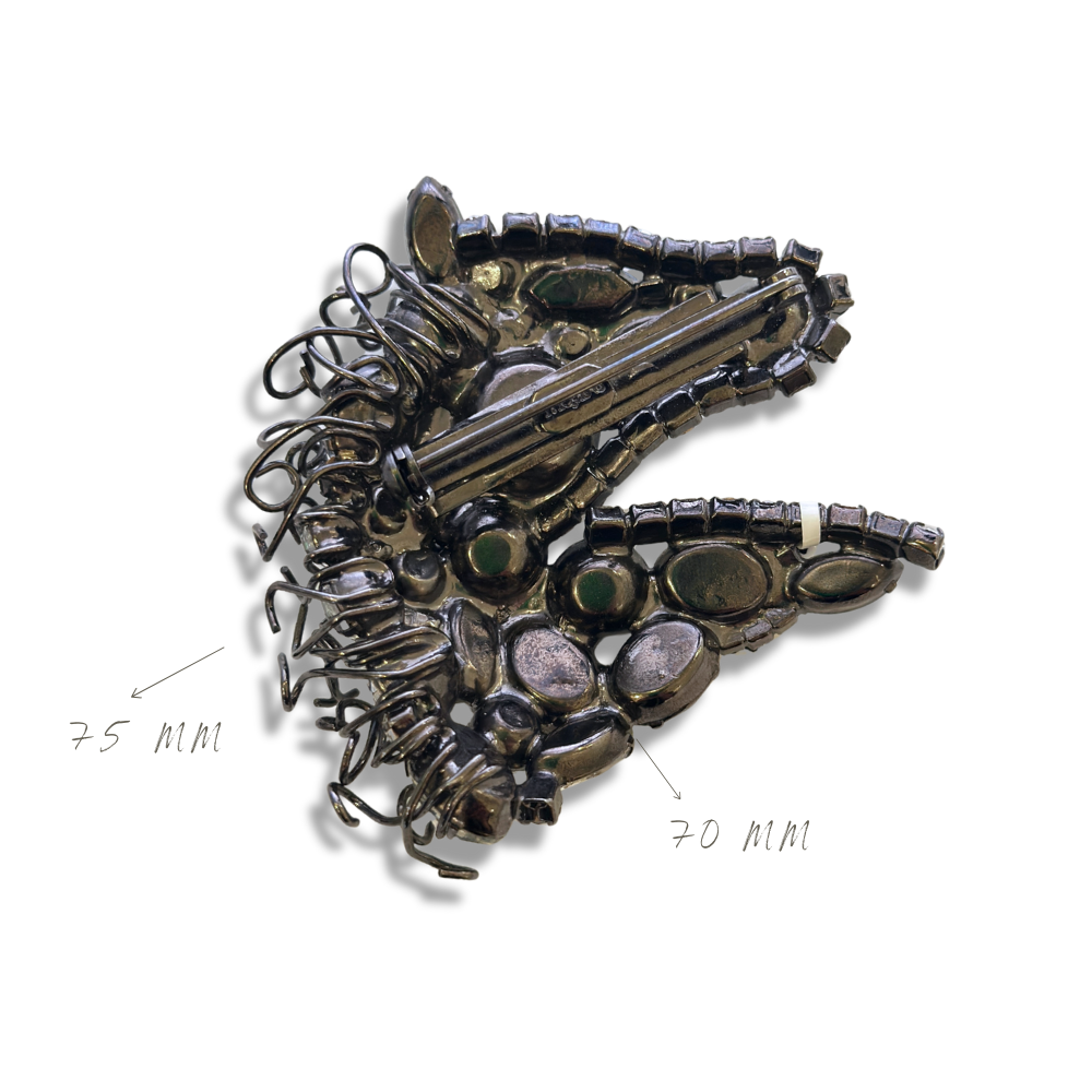 Diese prachtvolle Brosche mit großen Strasssteinen ist ein echtes Statement-Piece für alle, die auffälligen Schmuck lieben. Mit ihrer großzügigen Form und dem detailreichen Design verleiht sie jedem Outfit eine elegante und zugleich individelle Note.