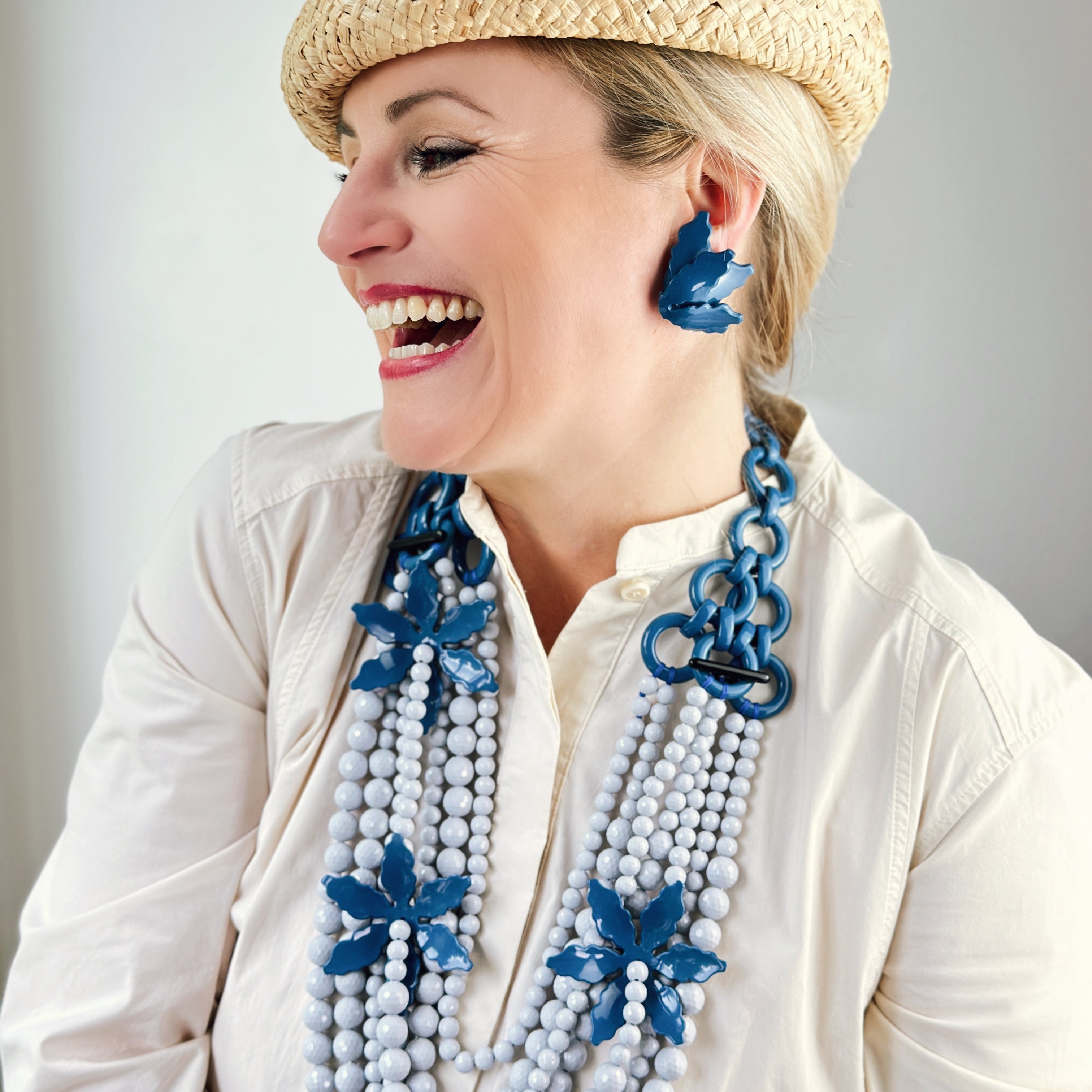 Wenn der Himmel einen guten Tag hat und du Ihn tragen kannst! Mit diese Modell ist das Wetter im in gute Laune Stimmung. Die Blumenreihe der Kette ist abnehmbar, doch auch damit steht das Wetter auf Sonnenschein!