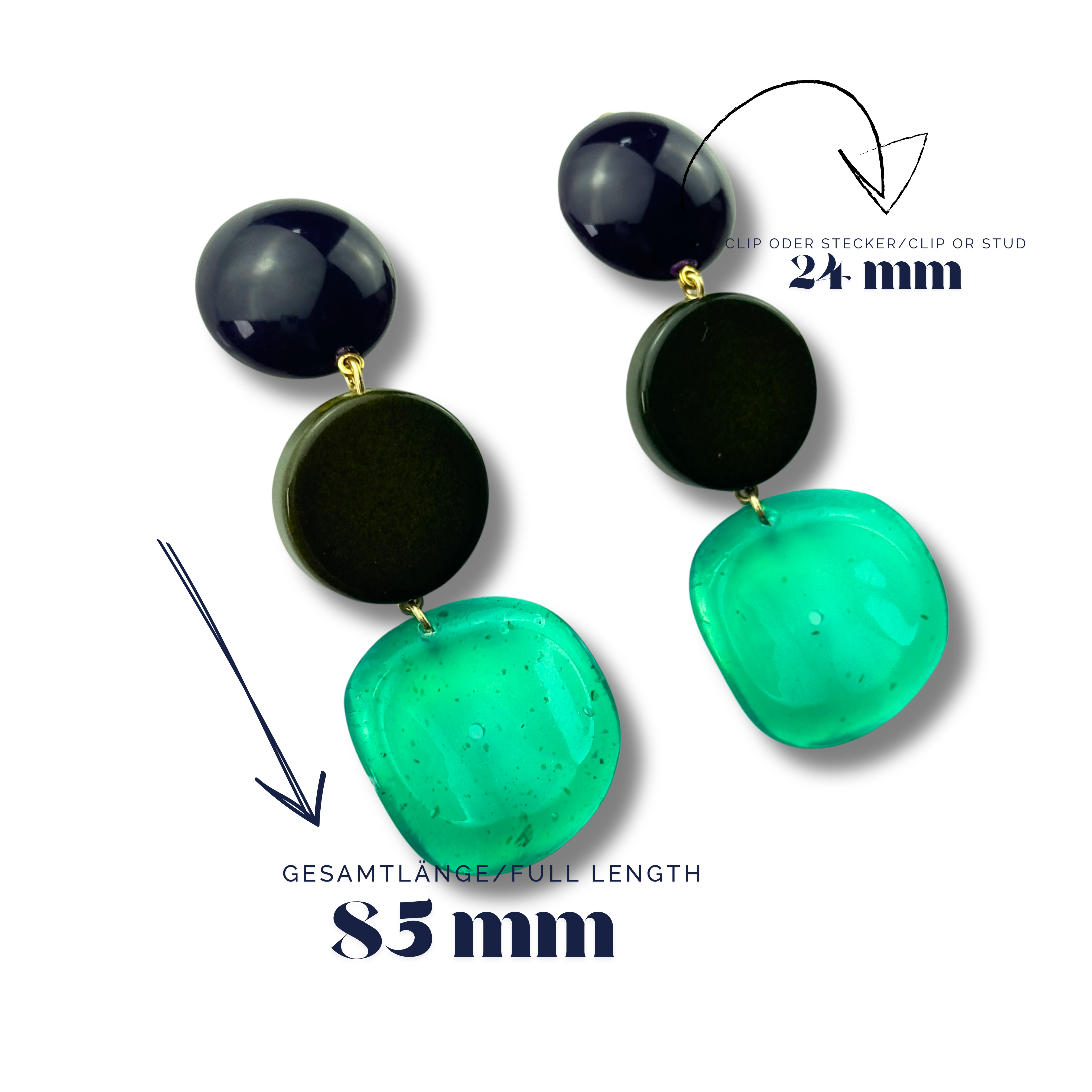 Mit einer der größten Werkstätten an handgefertigten Couture-Modeschmuck bieten wir eine Flexibilität, die in dieser Form einzigartig ist. Alle Ohrringe sind sowohl als Stecker als auch als Clip verfügbar – und als weltweit einzige Manufaktur können wir Oberteile nach Ihren Farbvorstellungen sofort individualisieren. Wählen Sie aus 300 verschiedenen Farbvarianten in unterschiedlichen Formen.