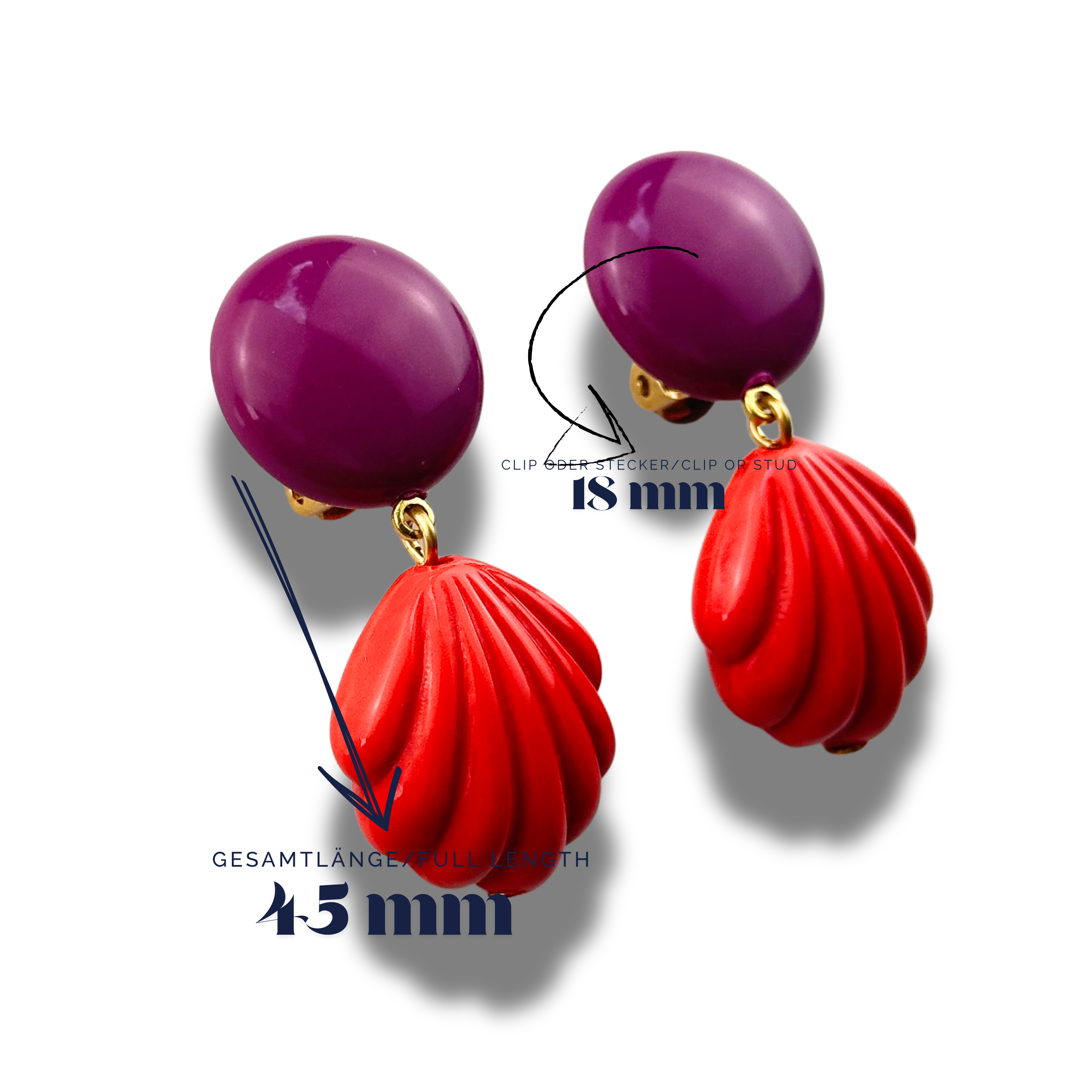 Mit einer der größten Werkstätten an handgefertigten Couture-Modeschmuck bieten wir eine Flexibilität, die in dieser Form einzigartig ist. Alle Ohrringe sind sowohl als Stecker als auch als Clip verfügbar – und als weltweit einzige Manufaktur können wir Oberteile nach Ihren Farbvorstellungen sofort individualisieren. Wählen Sie aus 300 verschiedenen Farbvarianten in unterschiedlichen Formen.