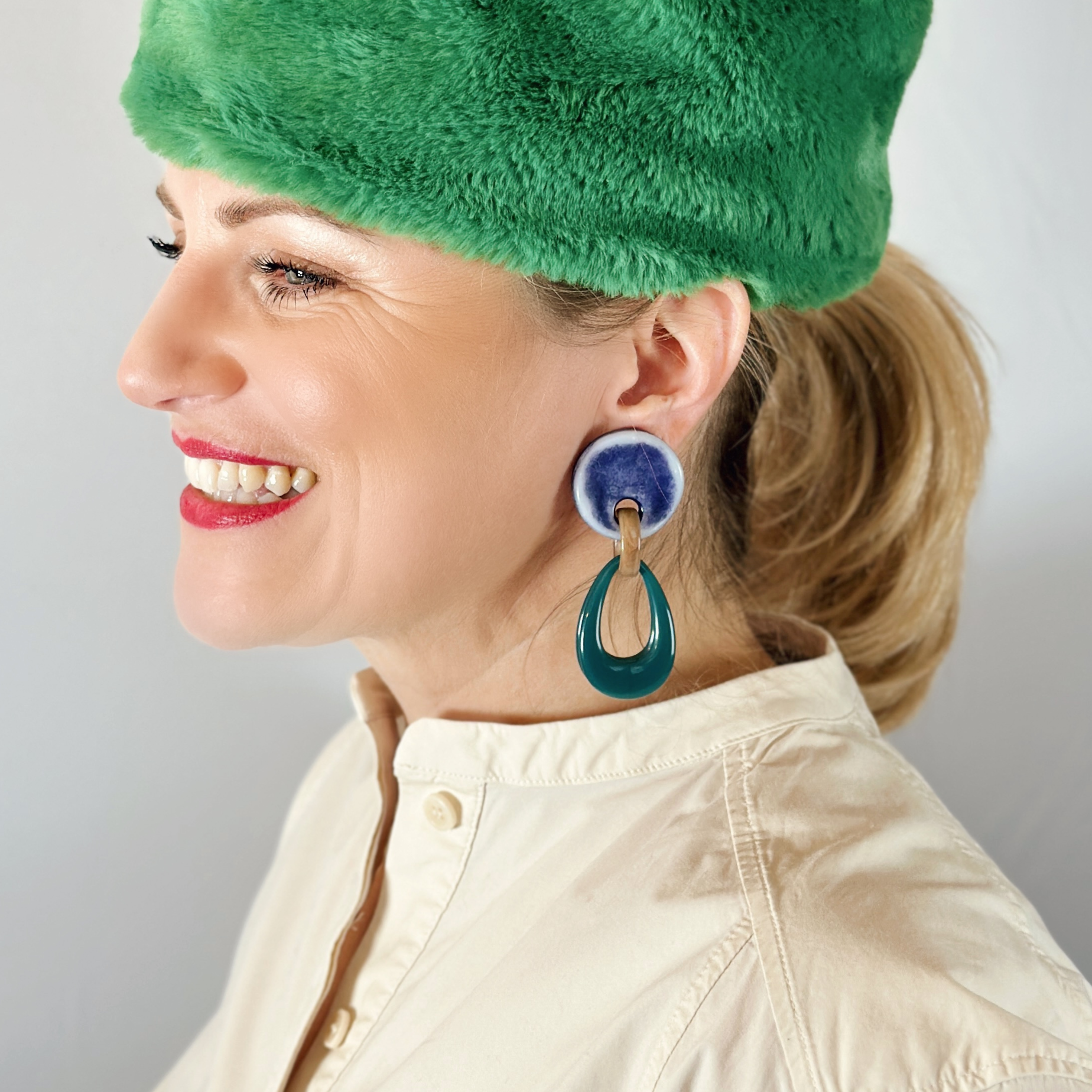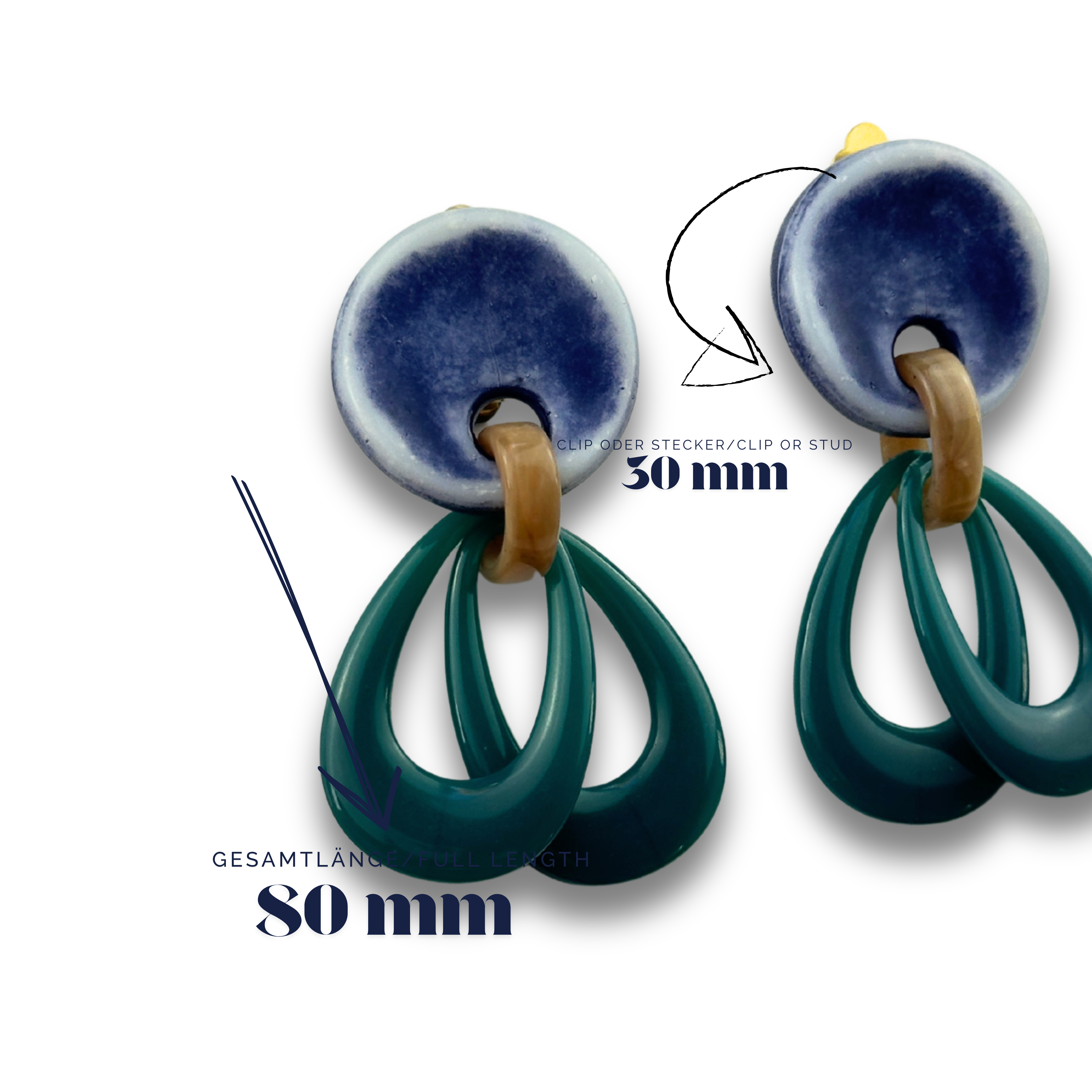 Mit einer der größten Werkstätten an handgefertigten Couture-Modeschmuck bieten wir eine Flexibilität, die in dieser Form einzigartig ist. Alle Ohrringe sind sowohl als Stecker als auch als Clip verfügbar – und als weltweit einzige Manufaktur können wir Oberteile nach Ihren Farbvorstellungen sofort individualisieren. Wählen Sie aus 300 verschiedenen Farbvarianten in unterschiedlichen Formen.